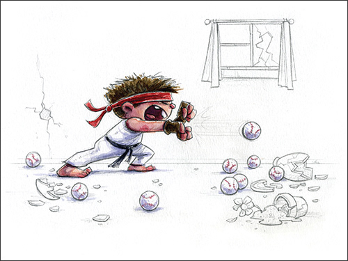 "Ha-broken!" (watercolor & pencil) for a Street Fighter tribute art show