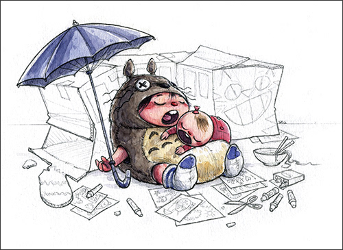 "Keeper of the Living Room Floor" (watercolor & pencil) for the J-Pop Explosion art show